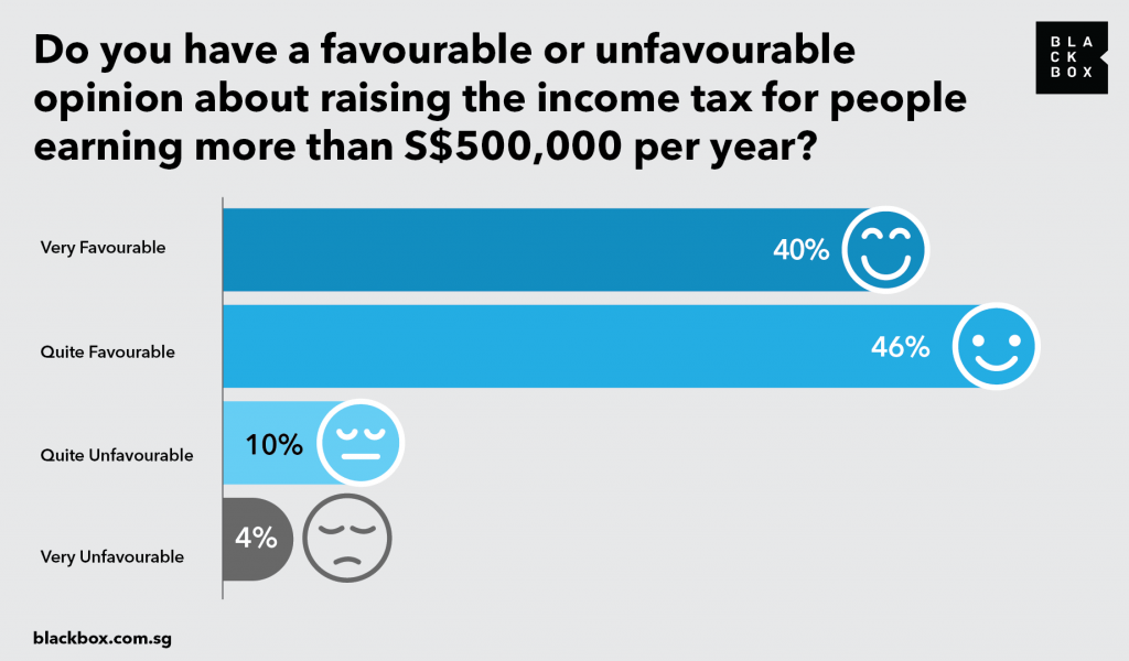 The Government is not oblivious to the approaching storm. Government transfers such as GST Vouchers are used to address regressive GST taxes in the city-state. The government has also announced increases in personal income tax for individuals earning more than S$500,000 per annum, a move viewed favourably by many Singaporeans.
